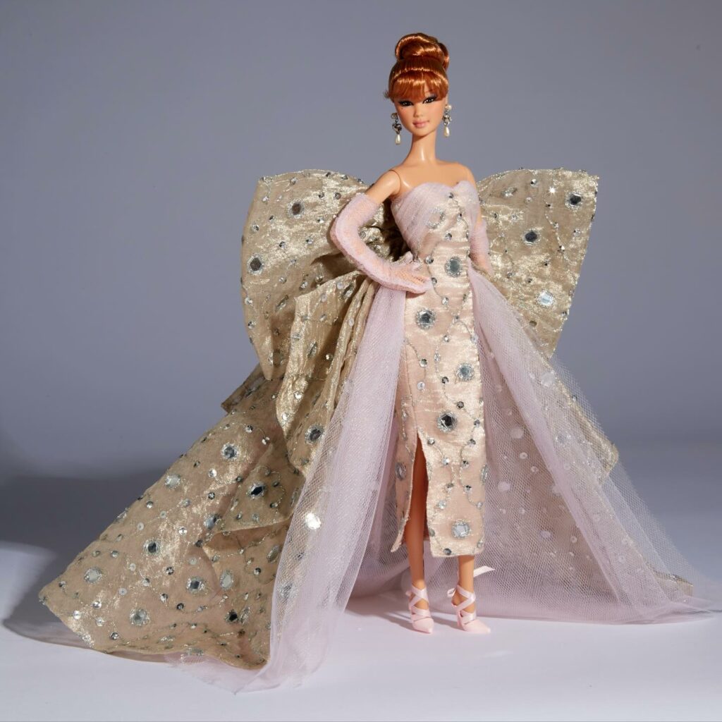 Inspiré par cet organza brodé de petits miroirs, Carlyle a créé de ses petites mains, une magnifique barbie, destinée à un heureux et fortuné collectionneur.