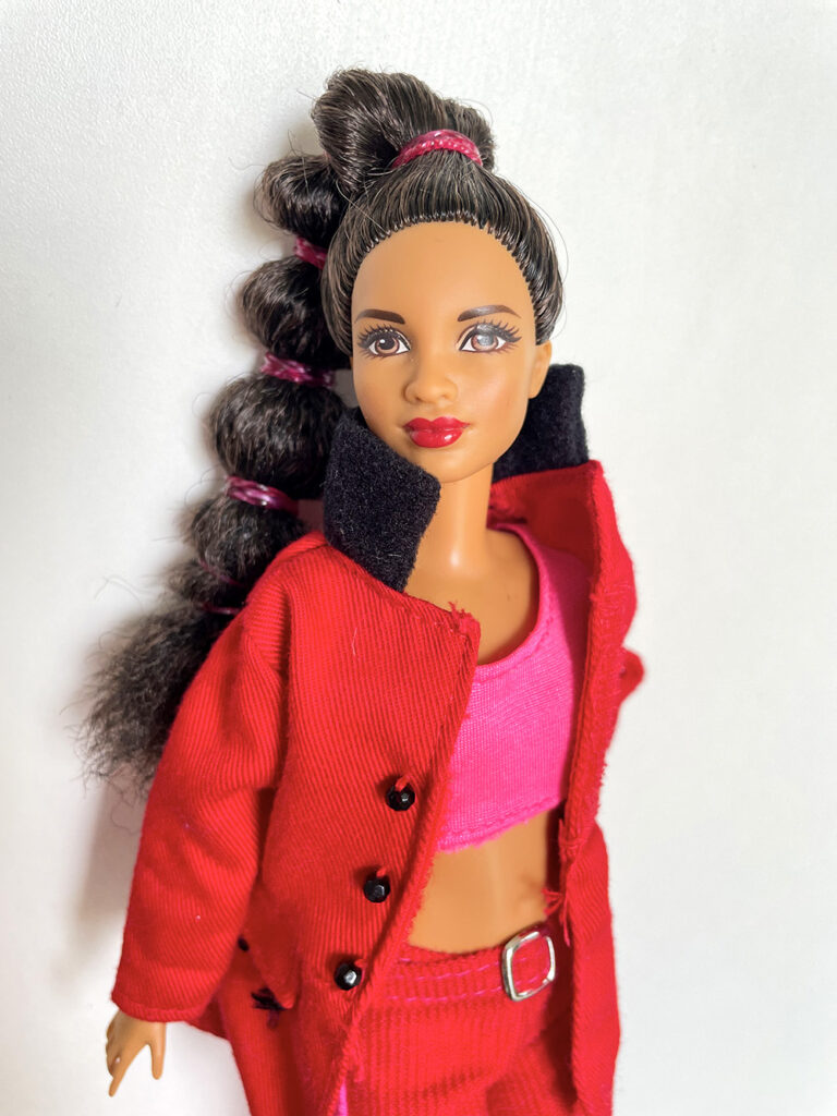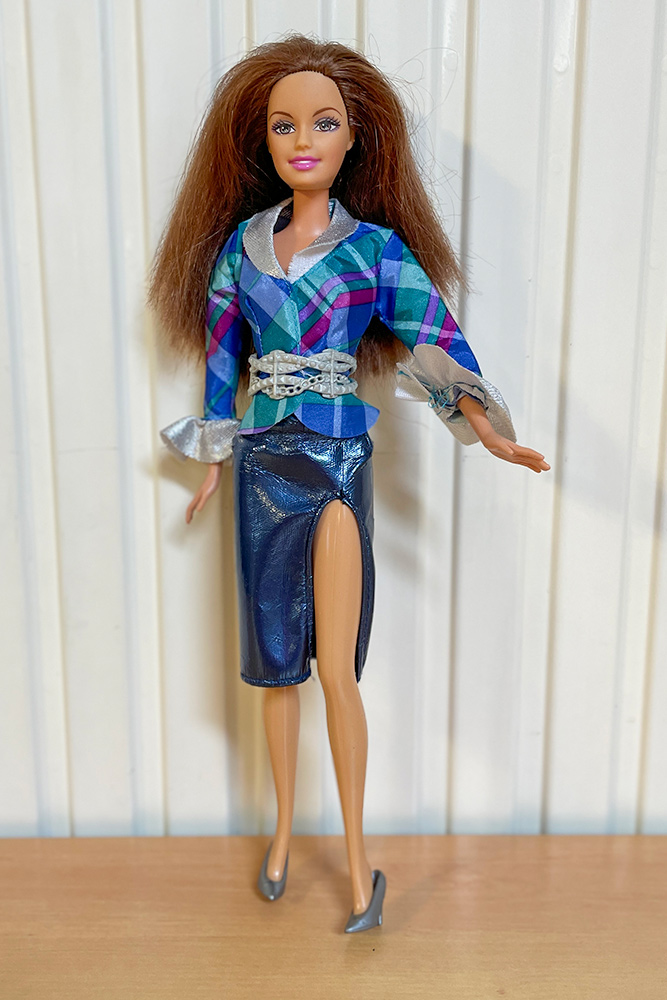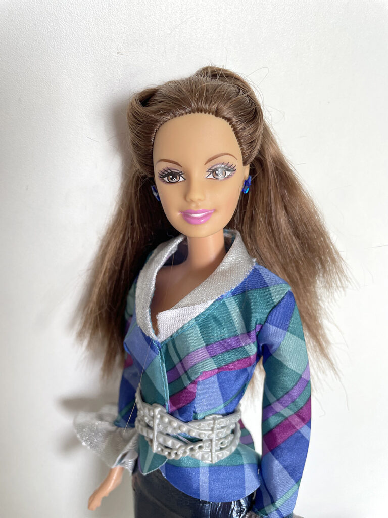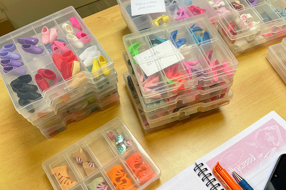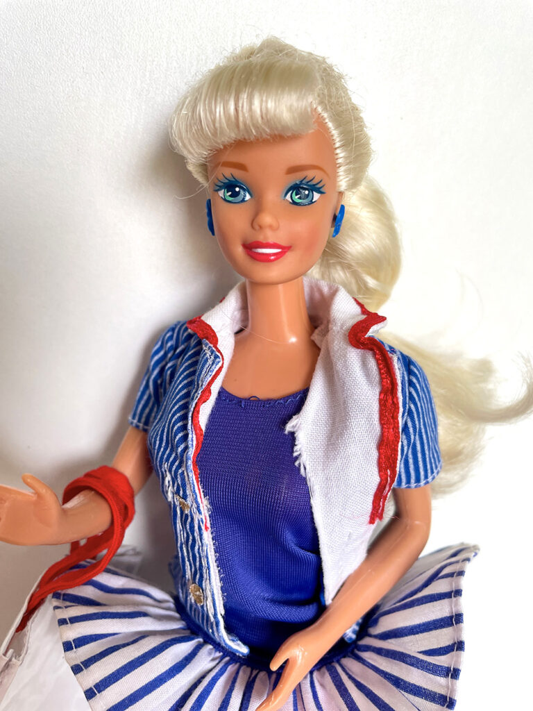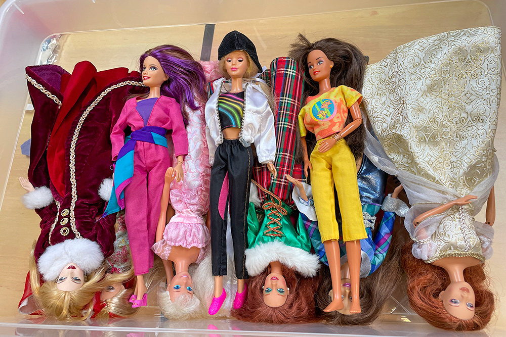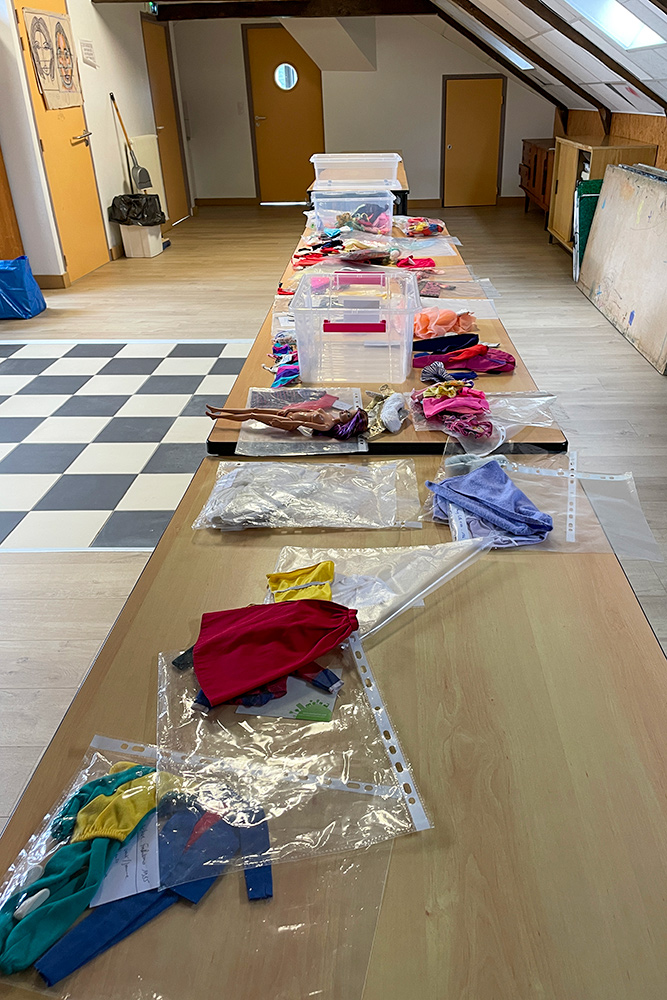 Véronique a apporté les poupées Barbie qu’elle souhaiterait vendre en vide-grenier, présentées avec une tenue complètement et harmonieusement disposées. Pour cela, elle apporte son stock de tenues et chaussures chinées de part et d’autre.
