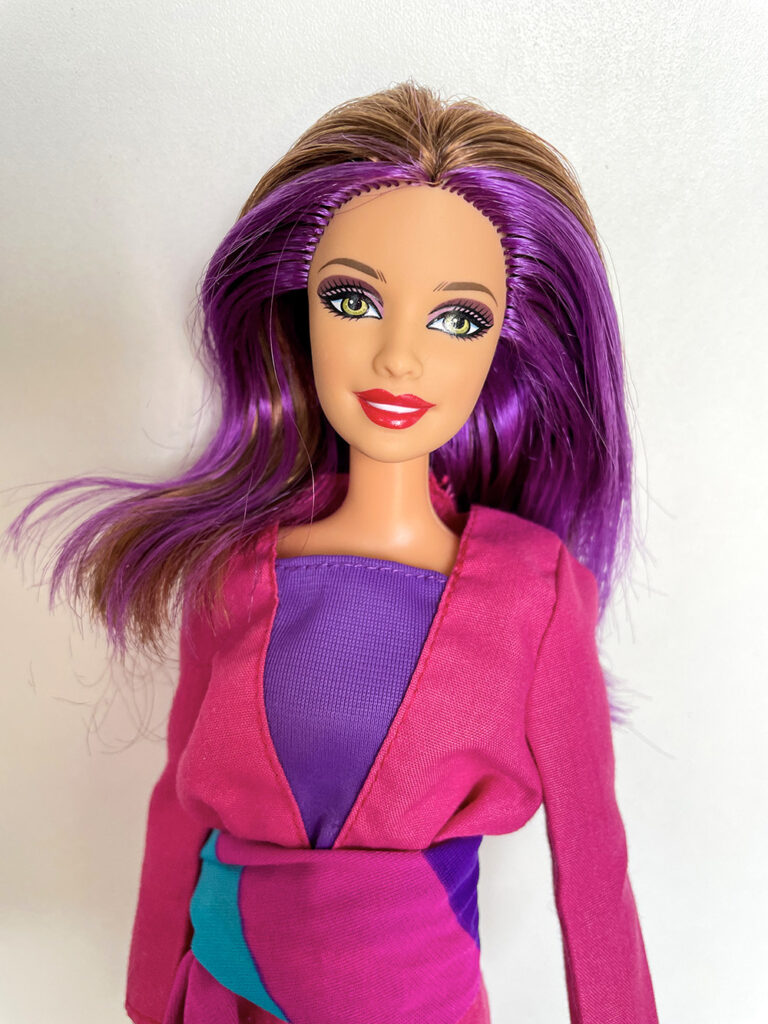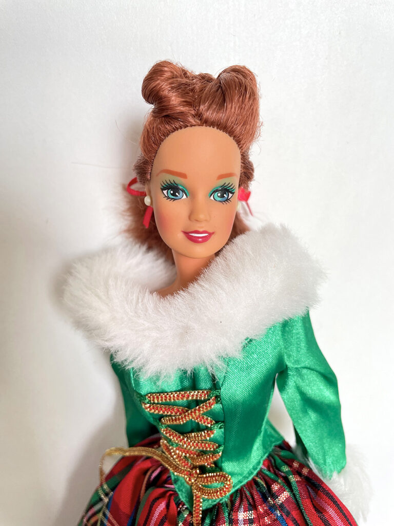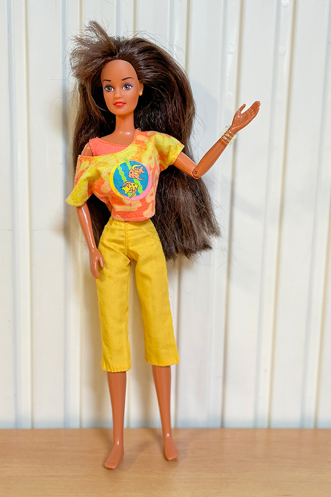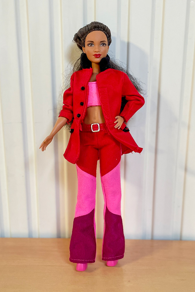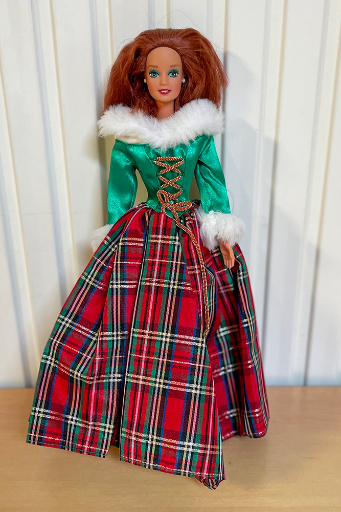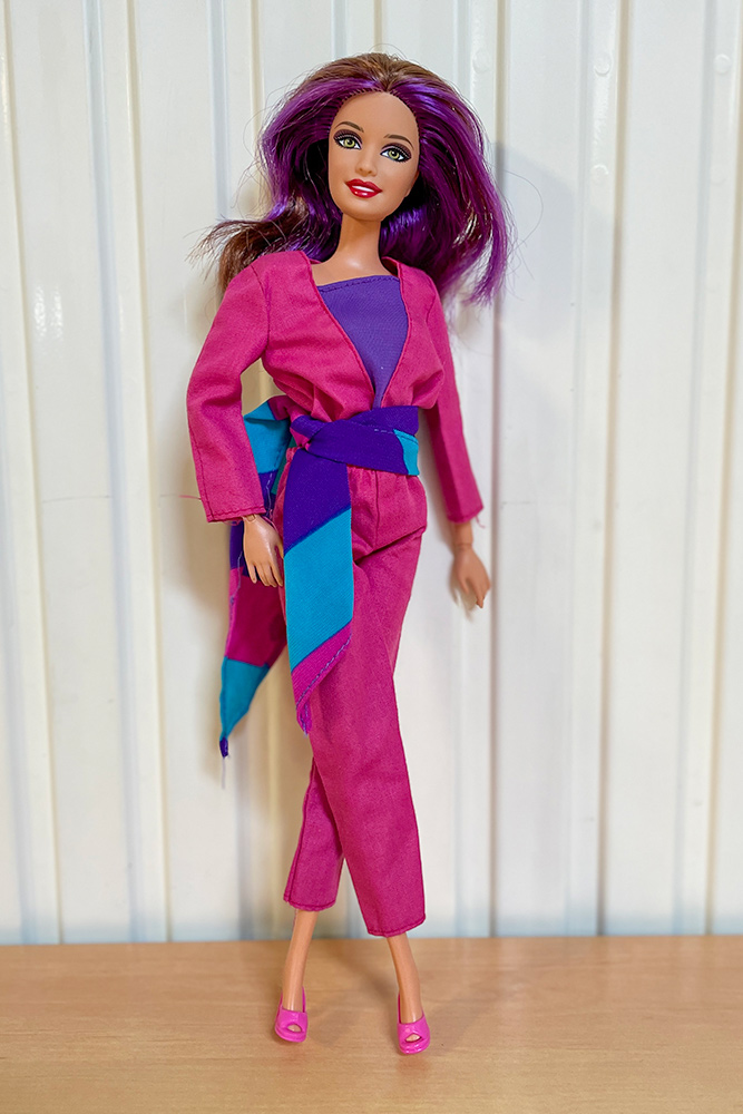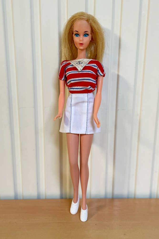 Véronique a apporté les poupées Barbie qu’elle souhaiterait vendre en vide-grenier, présentées avec une tenue complètement et harmonieusement disposées. Pour cela, elle apporte son stock de tenues et chaussures chinées de part et d’autre.