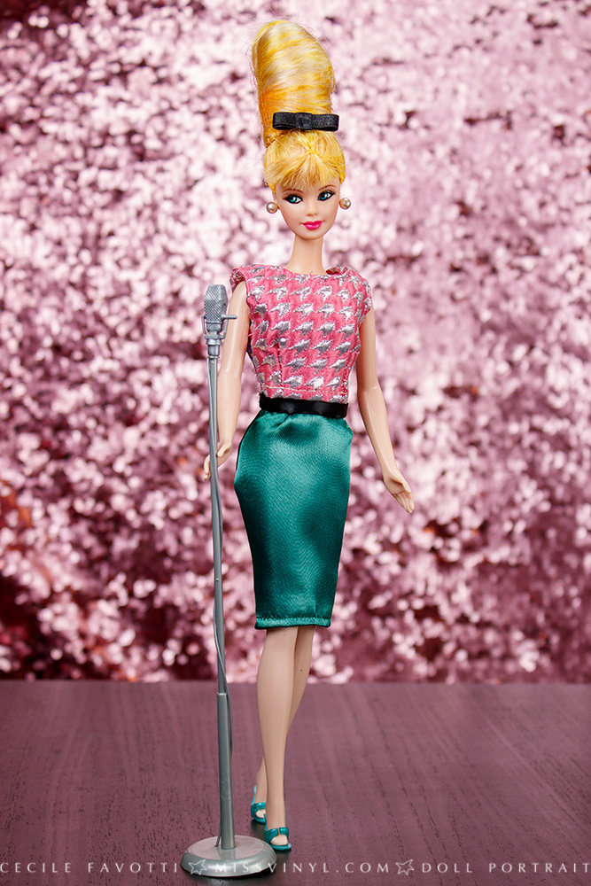 Voici l’originale, absolument irrésistible avec sa coiffure « beehive« , éditée à 800 ex. pour la convention nationale américaine de 1996. Depuis que je l’ai vue en couverture du Barbie Bazaar de Juillet/Août 1996, elle n’a pas quitté mon esprit de collectionneuse.
